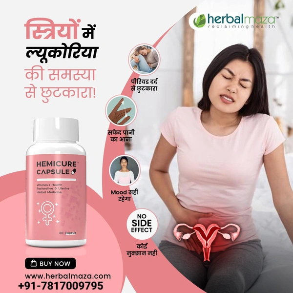 Hemicure herbal capsule is a natural solution for Leucorrhoea, formulated with potent herbs to provide relief from white discharge, foul odor, and itching. Its unique blend of herbs helps maintain the pH balance of the vagina and strengthens the reproductive system. With regular use, Hemicure can help you restore your vaginal health and improve your overall well-being.
